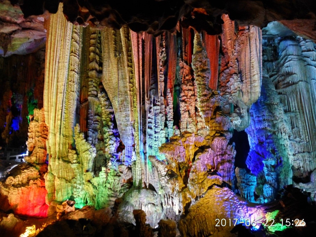 下午大家游览了有桂林最美岩洞之称的银子岩,看到了色彩缤纷而且形象各异的钟乳石石柱、石瀑等,令人不禁感叹大自然的鬼斧神且流连忘返。