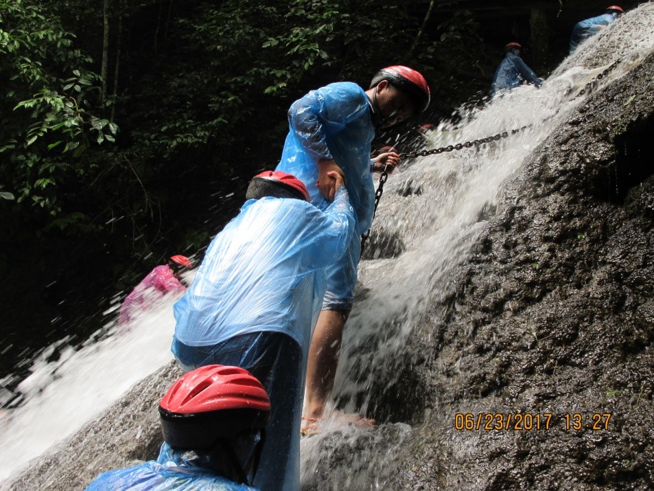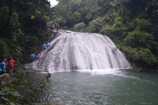 之后乘车赴古东瀑布,一起“湿身”,感受身心的悸动和快乐,体会“行到水穷处,坐看云起时”的超自然状态。