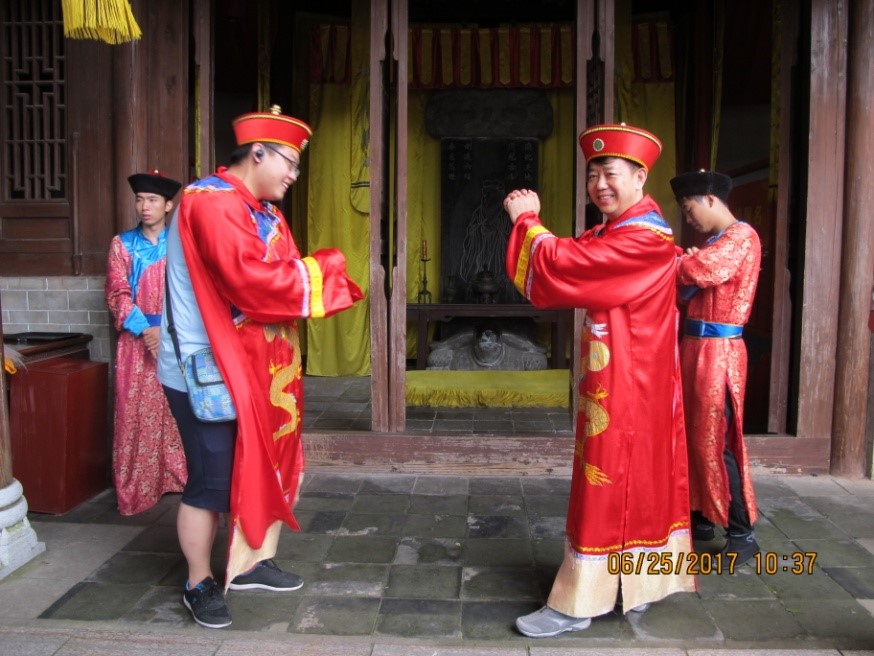 第五日上午游览被誉为“南方小故宫”的靖江王城.独秀峰景区,在这里,大家知道并且拜了自己出生年月对应的太岁,学习了拓印文字,同时最有意义的是大家过了一把乾隆25年贡院乡试考试之瘾,其中老板和薜雄飞中了举人!大家真是羡慕嫉妒啊,穿越到了古代他们还是一样能荣耀家族呢!